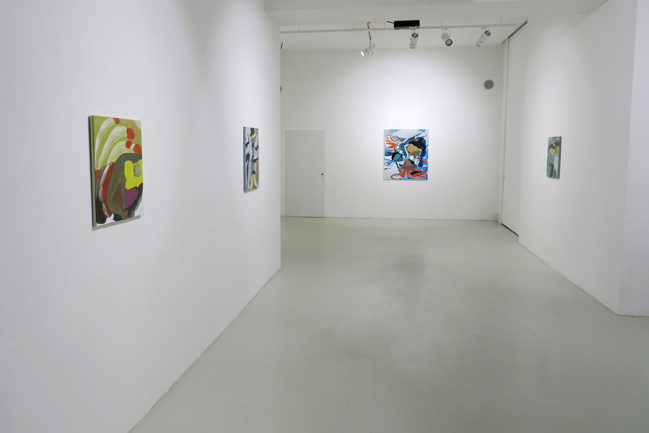 Following a thorough re- evaluation of the painting process and a continuous search for more intuitive works, the artist broke free of any possibility of narration and thus liberated her works from all remnants of concrete figuration. While the importance of the medium has remained unchanged, the figures have freed themselves from the idea of implicit unity and synchrony, and metamorphosed into varied shapes and patches of color. The surface of the painting is now purposefully interrupted and mixed into near-collages, denying utmost precision of the pictorial surface, and thus making way for expression in its purest form. Consequently, the art of painting becomes similar to a dance, building the story of a movement which refrains from any sort of recounting and aims to appeal to its viewers in a visceral manner.